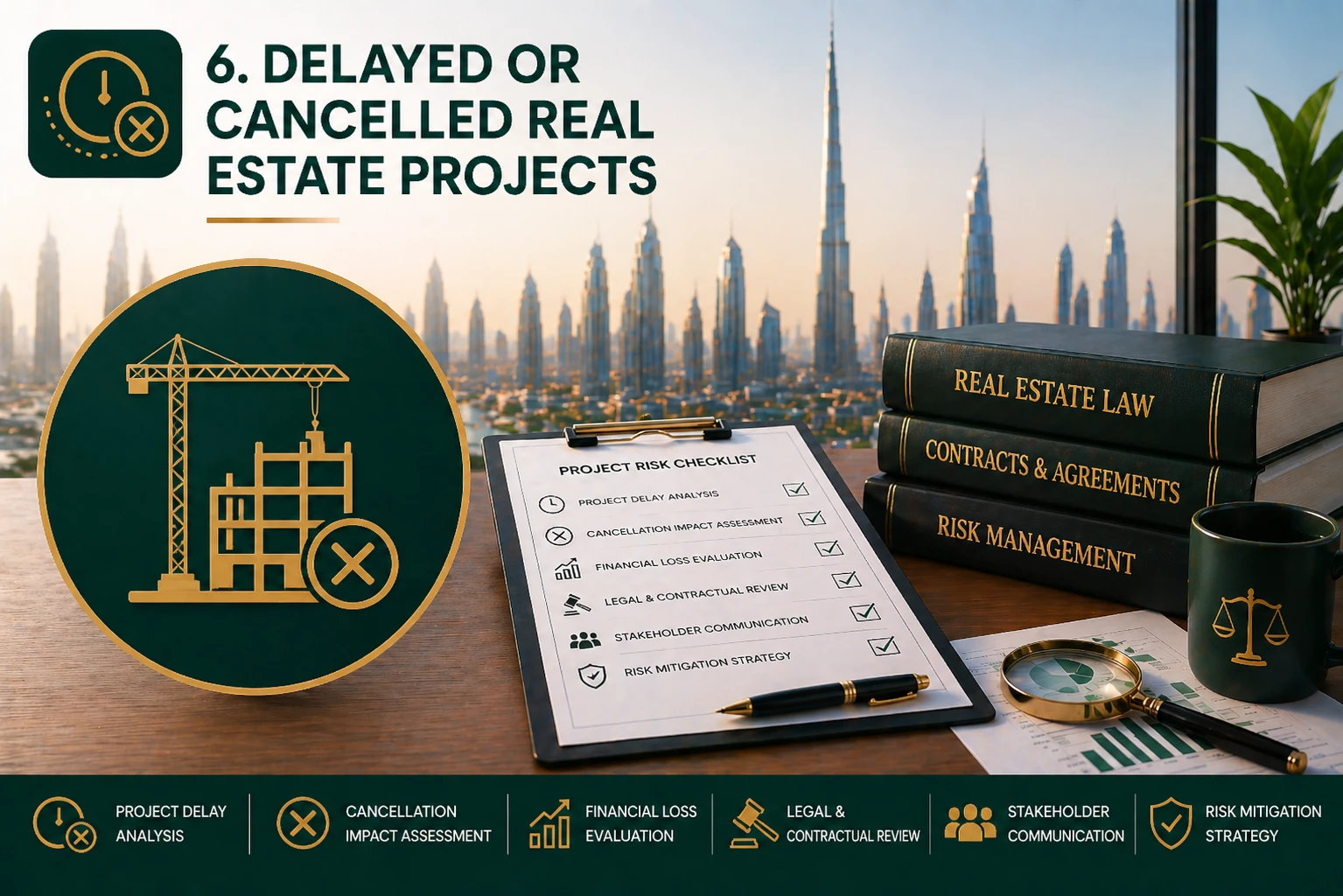 We assist investors affected by delayed or cancelled development projects by reviewing contracts, assessing developer obligations, and advising on available legal remedies. Our real estate lawyers evaluate compensation rights, termination options, and recovery strategies under applicable Dubai property law.
